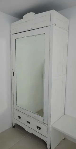 Armario vintage blanco con espejo