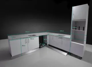 Cocina modular en excelente estado, lista para ser instalada. - Módulos de cocina en blanco y detalles plateados. Encimera de silestrone. - Fabricada con materiales de calidad. -Fregadero incluido -Posibilidad de adquirir *horno y estractor* (Todo: 1.050€) por separado 50€ horno y 50€ estractor
