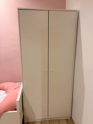 Armario de dos puertas de la serie KLEPPSTAD de IKEA. Tiene dos roturas que se hicieron por dentro al montar el armario, se compró hace dos meses, está nuevo. Se vende por mudanza. Sus dimensiones son 176 cm de alto, 79 cm de ancho y 55 cm de fondo. - Altura total: 176 cm - Ancho total: 79 cm - Profundidad total: 55 cm - Ancho de las puertas: 76 cm - Altura interior útil: 120 cm - Espacio inferior: 43 cm - Compartimento inferior: 50 cm