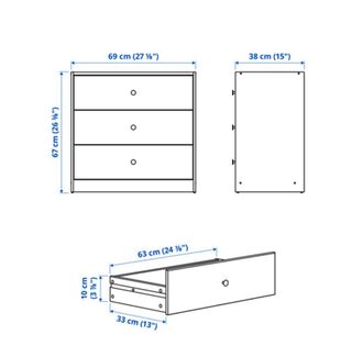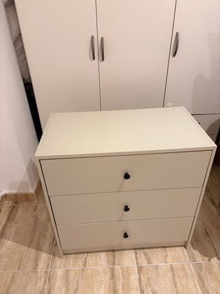 Cómoda de tres cajones de IKEA, modelo GURSKEN. Medidas 69x67 cm - Diseño moderno y funcional. - Tiradores negros. - Acabado en color beige.