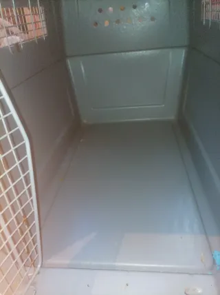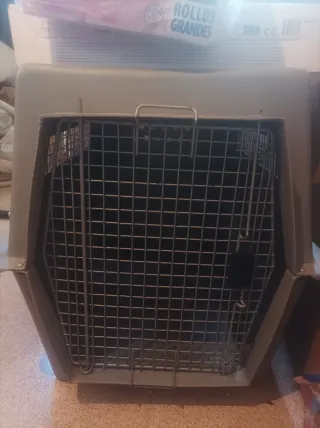 Transportín de plástico resistente para mascotas. - Puerta de rejilla metálica. - Asa superior para facilitar el transporte. Medidas: 0,90x0,60x0,65m