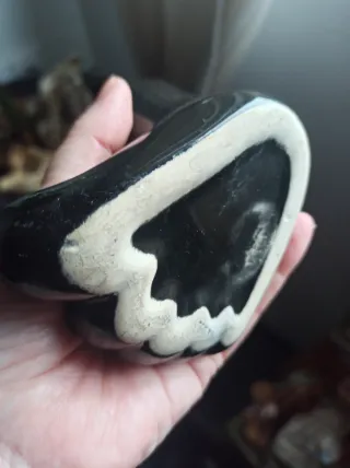 Figura decorativa con un diseño único y llamativo. - Fabricada en cerámica. - Color negro brillante.