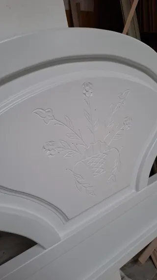 Cabecero de cama individual con un bonito diseño floral tallado. Aporta un toque elegante a cualquier dormitorio. - Diseño floral tallado. - Acabado blanco mate. Madera maciza