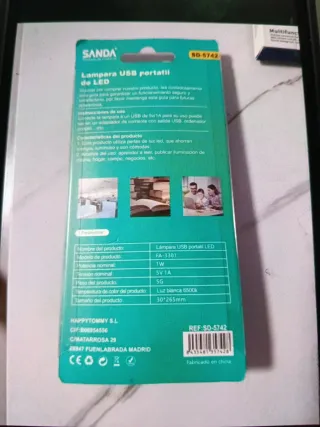 Lámpara USB SANDA modelo SD-5742 con cuello flexible. - Potencia de 1W LED. - Diseño moderno y práctico. - Compatible con ordenadores y otros dispositivos USB.