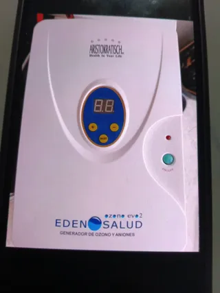 Generador de ozono y aniones de la marca Aristokratisch. Diseñado para mejorar la calidad del aire en tu hogar. - Pantalla digital con indicadores. - Botones de control para ajuste. - Indicador luminoso de funcionamiento.