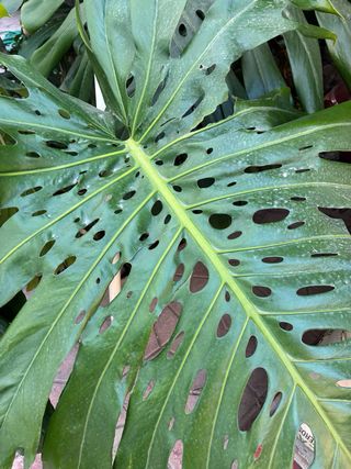 Esqueje de Monstera Deliciosa, también conocida como Costilla de Adán. Ideal para añadir un toque tropical a tu hogar. - Hoja grande y fenestrada. - Planta de interior. - Fácil cuidado.