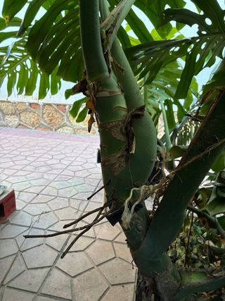 Esqueje de Monstera Deliciosa, también conocida como Costilla de Adán. Ideal para propagar y añadir un toque tropical a tu hogar. - Planta sana y en crecimiento. - Raíces aéreas visibles.