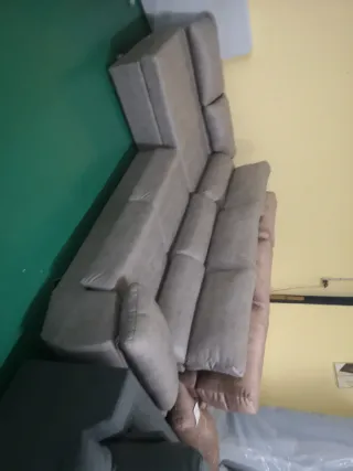 Chaiselongue modular de tela, ideal para tu salón. Su diseño se adapta a diferentes espacios. Estamos en lorqui Monteagudo y San javier 667773229 - Tapicería en tonos beige y gris. - Estructura robusta y cómoda.