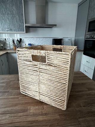 Bonito leñero rectangular hecho de esparto. Ideal para almacenar leña de forma organizada y decorativa. En venta leñeros, capazo ó espuerta confecionados en esparto natural, de las medidas siguientes: 50x40x25 y, 60x40x25 cm. Precios de 39 y 42€ respectivamente. Medidas de 55x40x25 cm. aprox. y 60x40x25 cm aprox. pero con armazón de forja para mayor resistencia 44 y 47€ respectivamente .GASTOS DE ENVIO NO INCLUIDOS, - Diseño rectangular. - Material: Esparto. - Perfecto para hogares con chimenea.