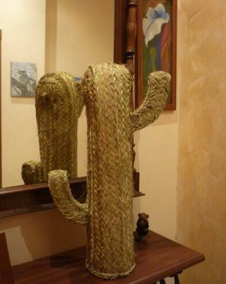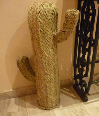 Figura decorativa de cactus hecha a mano con materiales naturales. - Medidas: 53 cm de alto, 40 cm de ancho y 13 cm de profundidad. - Diseño trenzado con acabado rústico. En venta cactus realizados en esparto y armazón de madera, confeccionados de forma artesanal ,son muy decorativos.. las medidas son :35x30x10 Ø cm Precio de 17€ ; 53x40x13 Ø cm .Precio de 30€; 70x40x17 Ø cm. Precio 41€; 105x60x22 Ø cm. Precio 63€ ; 145x60x22 Ø cm. Precio 80€; 180x60x30 Ø cm.Precio de 103€ ; 180x60x60 Ø cm. de 5 ramas, Precio 125€ y, 220x60x60Ø cm. de 7 ramas, Precio 189€. Envio no incluido