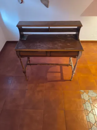 Mesa de ordenador con un diseño funcional y moderno. - Bandeja extraíble para teclado. - Compartimento abierto. - Cajones de madera. La vendo porque se me queda pequeña. Está perfecta, la tapa tiene alguna manchilla y el compartimento abierto para poner la torre del pc si está arañado. Pero por lo demás está como nueva. No la envío porque es de madera maciza y no se puede desmontar y casi seguro que llega rota.