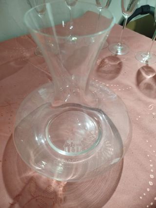 Decantador de vino con un diseño elegante y moderno. Ideal para oxigenar el vino y realzar sus aromas. Con el escudo del futbol club barcelona - Forma ancha para una mayor superficie de contacto. - Cuello estrecho para facilitar el vertido.