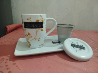 Conjunto de 6 tazas de té de porcelana con un bonito diseño. Cada juego trae ( 1 plato, taza con tapadera y filtro) Se venden por separado La unidad a 10 € - Marca: Montecelio - Diseño floral verde y detalles en blanco - Apto para lavavajillas