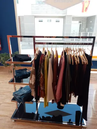 Conjunto de estanterías metálicas, ideales para organizar espacios comerciales o de almacenamiento. Módulo de dos pies y cinco baldas de 1 metro 100 euros .Módulo de dos pies y cinco baldas de 1.20 metros 150 euros - Diseño modular. - Soportes de pared incluidos. - Acabado liso y fácil de limpiar.