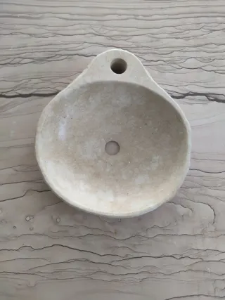 Lavabo sobre encimera de mármol Crema Marfil natural, con acabado apomazado. Diseño elegante y atemporal, ideal para baños clásicos o modernos. Diámetro: 42 cm Altura: 13 cm Mármol natural Pieza única Entrega en mano o consultar