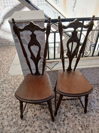 Conjunto de dos sillas de comedor o auxiliares con un diseño clásico y elegante. - Fabricadas en madera. - Color marrón oscuro. - Respaldo con detalles tallados. - Asiento cómodo y redondeado.