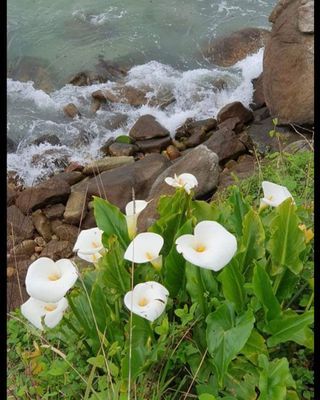 macetas con calas grandes y pequeñas que no salen en fotos. están preciosas ya . también de colores...