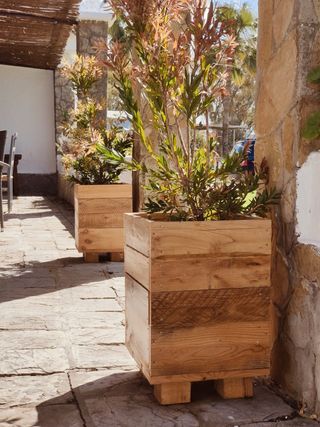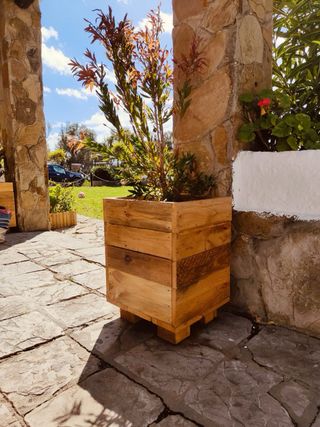 macetas de madera hechas a mano y protegidas contra la lluvia.
