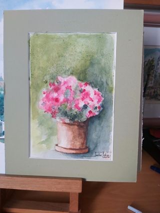 Preciosa acuarela original,de una maceta con flores y paspartú - Pintura sobre papel. - Tonos marrones y rosas. Entra en mi perfil más obras playas y vistas de Cádiz, paisajes,arboledas,bodegones,. Obra plástica contemporánea original y firmada a puño y letra. Peces toi,fondo marino.Oleos y acrilico. HAGO ENVIOS MEDIANTE WALLAPOP MENSAJERÍA GLS Y INPOST EN PUNTO DE ENTREGA.