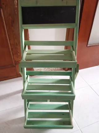 Estructura de madera con varios niveles para colocar macetas. Ideal para organizar tus plantas de interior. - Diseño de escalera. - Pizarra superior para escribir.