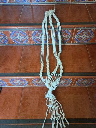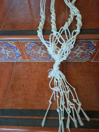 Colgador de macrame , maceta blanca de cerámica y planta artificial . Tengo otro colgador mas. Si te interesa ponte en contacto y hablamos