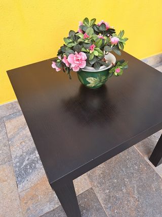 Mesita alta macetero de madera barnizada y reposa macetas de metal y plástico. Son muy antiguos, pero está bien para su uso, están como se ven en las fotos con algunos pequeños defectos. Las medidas y el precio están marcadas en las fotos.