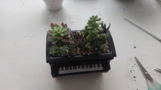 Original maceta con forma de piano vertical. Contiene una composición de suculentas variadas. - Incluye varias suculentas, plantadas sobre sustrato específico para ellas. - El color del piano puede ser negro o marrón. - Inlcuyo descripción de cada especie de suculentas y el tipo de cuidado. -Se entrega presencialmente en SALAMANCA.