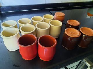 8 tarritos beige, 2 rojos, 3 marrones, y 1 marrón claro, para múltiples usos, cocina o maceta