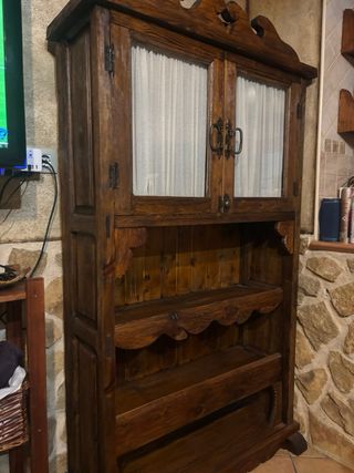 Mueble Alacena Rústica Madera y Cristal
