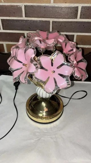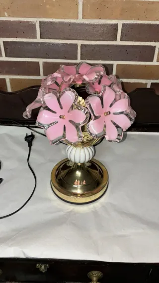 Lámpara de mesa floral dorada y rosa