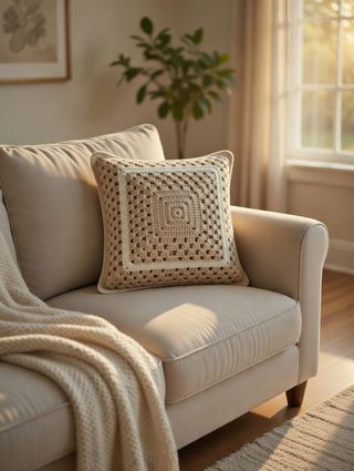 Cojín cuadrado tejido a mano beige