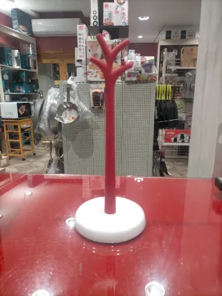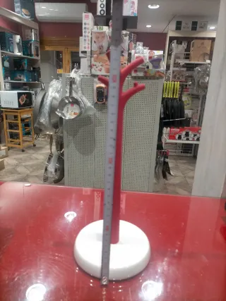 Portarrollos de cocina con un diseño moderno y funcional. Su base redonda y estable lo hace perfecto para cualquier encimera. - Color: Rojo y blanco. - Material: cerámico base estable muy actual.