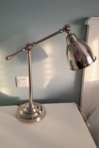Conjunto de 2 ámparas de mesa modelo BAROMETER de Ikea. Su diseño articulado permite ajustar la luz fácilmente. Se encuentran en perfecto estado. Se valora oferta por una unidad. - Acabado plateado. - Fabricada en metal. - Base estable.