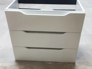 Mueble de baño moderno de 80cm de ancho. Su diseño combina acabados en blanco y negro, aportando un toque elegante. - Estructura principal en blanco brillante. - Cajones y compartimentos interiores en negro. - Fabricado con materiales de calidad.