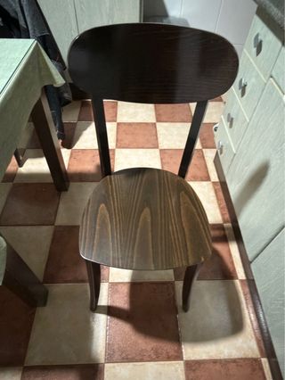 Conjunto de mesa y cuatro sillas de madera, ideal para hostelería o para darle un toque especial a tu hogar. - Diseño elegante y funcional. - Material: Madera. - Incluye: 1 mesa y 4 sillas.