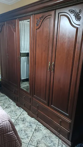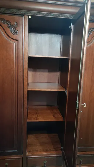 No reservo. No marear Armario de madera con un diseño clásico y elegante. Se vende vacío. Es modular - Puertas con detalles de cristal. - Tiradores de madera. - Cajones inferiores para almacenamiento adicional.