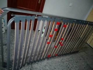 El somier tiene una parte doblada pero no afecta a su uso Se vende somier con colchón de medidas 180x90 cm. - Estructura del somier de metal. - Láminas de madera.