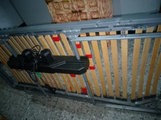 Base de cama articulada en buen estado, lista para usar. - Estructura principal de metal. - Láminas de madera para soporte del colchón.