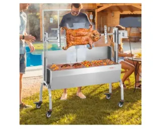 Asador giratorio VEVOR, ideal para fiestas y barbacoas. - 4 niveles de altura. - Motor de 38 W. - Capacidad de carga de 90 kg. - Rotación suave de 360°.