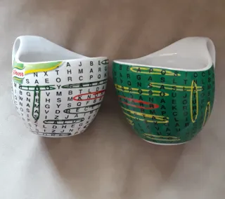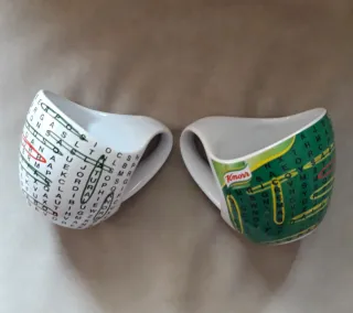 Este juego incluye dos tazas con un diseño divertido y original. - Tazas con diseño de crucigrama. - Logo de Knorr visible. - Nuevas a estrenar con su caja - Apto para lavavajillas y microondas - Medidas 12cm x 10cm aprox.