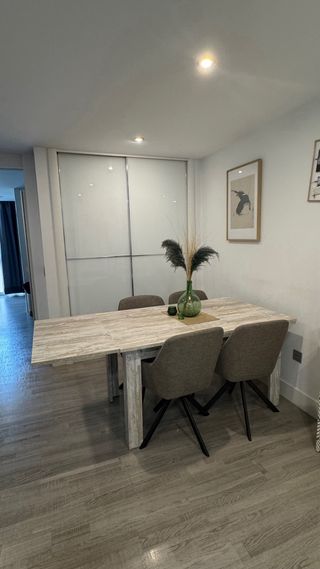 Mesa de comedor extensible, ideal para optimizar el espacio en tu hogar. Se vende por traslado. Medida de tablero cerrada 140, dos alas de 50 cm cada una. Total abierta 240. - Tablero con veta - Diseño moderno - muy funcional
