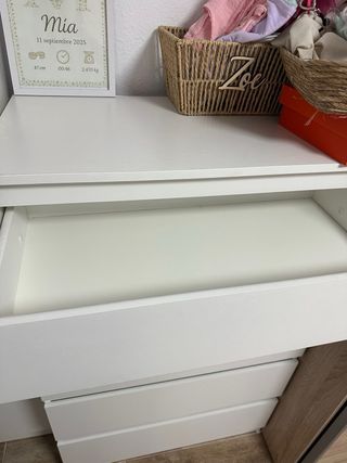 Cómoda de seis cajones de Ikea. Un mueble práctico y espacioso para organizar tus pertenencias. - Diseño moderno y funcional. - Acabado en color blanco. Tiene por defecto , la parte de arriba al limpiarla con un producto se mojo demasiado y tiene eso aglomerado. Lo demas todo nuevo y cajones .