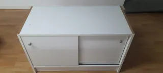 Mueble de almacenaje de la serie Trotten de Ikea. Cuenta con una estructura metálica y un diseño moderno. - Puertas correderas con tiradores. - Cerradura en una de las puertas. - Estantes interiores ajustables.