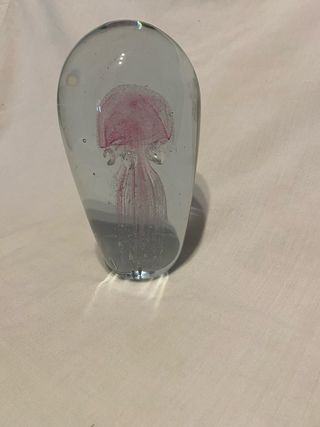 Preciosa figura de artesanía en cristal macizo con una medusa rosa en su interior. Un detalle decorativo único. - Diseño de medusa en tonos rosados. - Cuerpo de cristal transparente. - Base sólida.