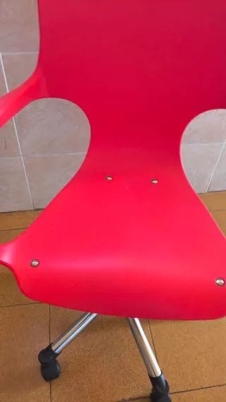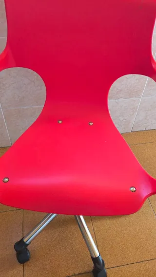Silla de escritorio moderna con un diseño llamativo. - Asiento ergonómico. - Base giratoria con ruedas. - Acabado brillante.