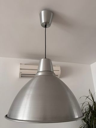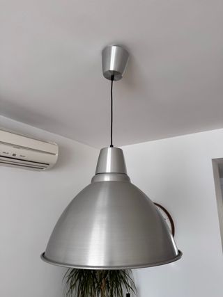 Lámpara colgante de diseño moderno con acabado plateado. - Fabricada en metal. - Estilo industrial. No incluye bombilla
