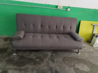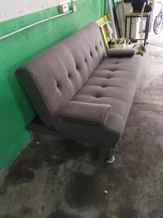 Sofá cama de tela gris que se convierte en una cama de matrimonio. - Medidas de cama: 135cm. - Diseño moderno y funcional.