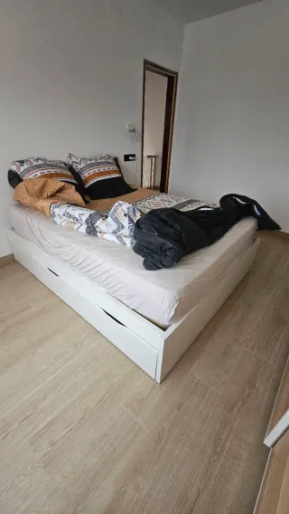 Estructura de cama de matrimonio con un diseño moderno y práctico. - Medidas: 150x190 cm. - Incluye cuatro amplios cajones para almacenamiento. - Color blanco mate. - Fabricada con materiales de calidad.