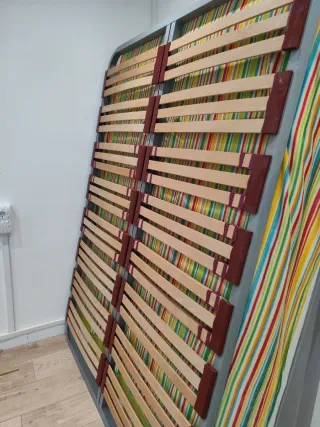 Somier para cama de matrimonio con láminas de madera. Sin patas. - Medidas: 135x190 cm. - Estructura metálica. - Diseño con láminas de madera.