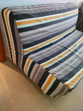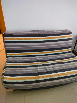Sofá cama de 4 plazas de Ikea en buen estado. Su diseño a rayas le da un toque moderno a cualquier estancia. - Tapicería de tela. - Patrón de rayas multicolor.